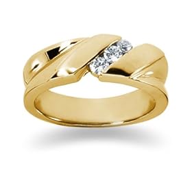This beautiful diamond wedding band features 3 Round cut sparkling white diamonds. The diamonds are on a band crafted in 18k Yellow Gold.