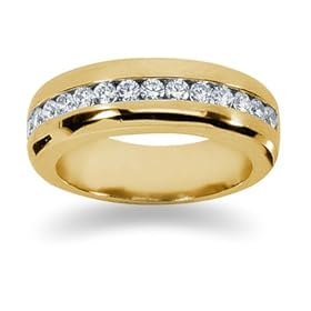 This beautiful diamond wedding band features 14 Round cut sparkling white diamonds. The diamonds are on a band crafted in 18k Yellow Gold.