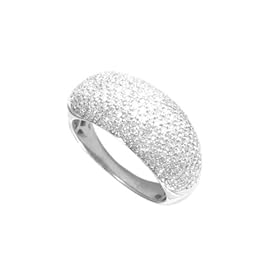 This gorgeous domed ring is made from 14 karat white gold and shimmers with 139 petite round pave diamonds. The pave design creates a wide glittering swath that spans the top of the finger and sparkles when it catches the light. The diamonds featured here are near colorless and have a total weight of 1/2 carat. The ring tapers in back for a comfortable fit and feel.