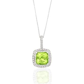 BEAUTIFUL, BRAND NEW, GENUINE 3.38 TCW 14K WHITE GOLD CUSHION PERIDOT & DIAMOND PENDANT. THIS SPARKLING PENDANT HAS A RETAIL PRICE OF $849.